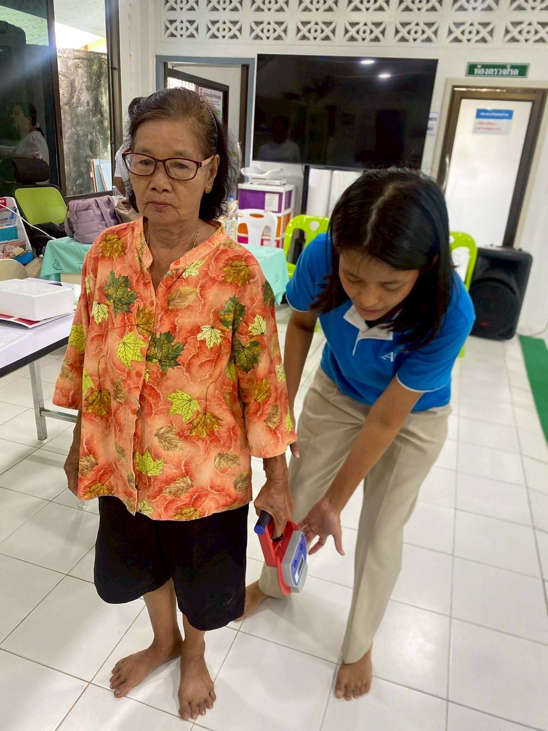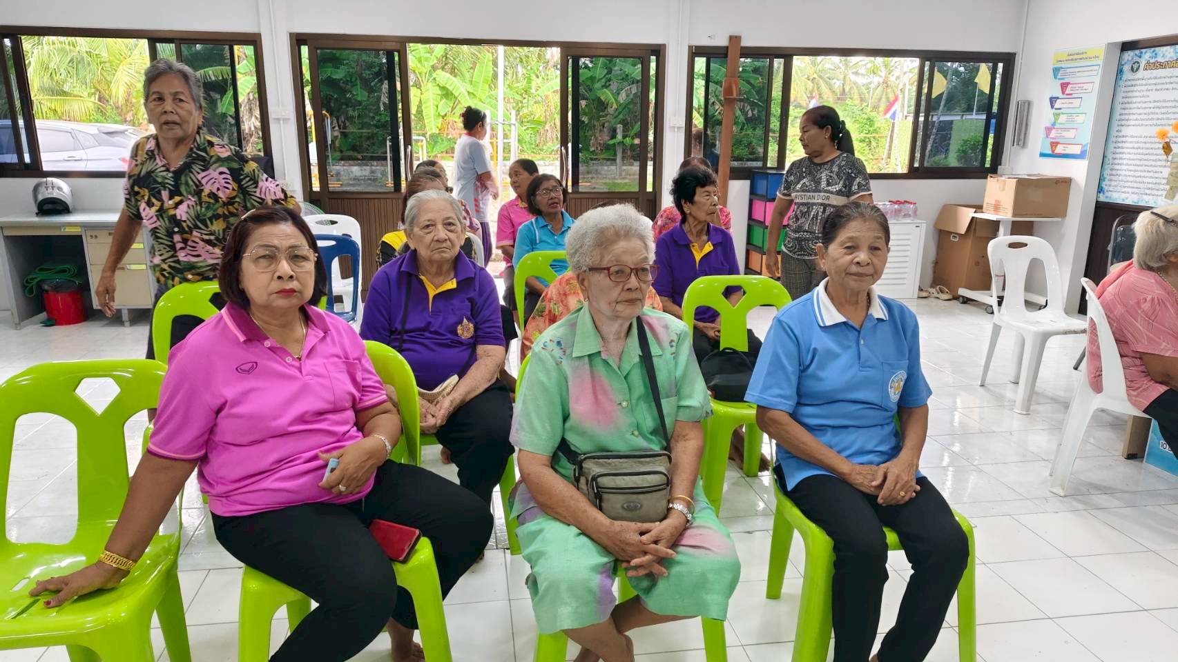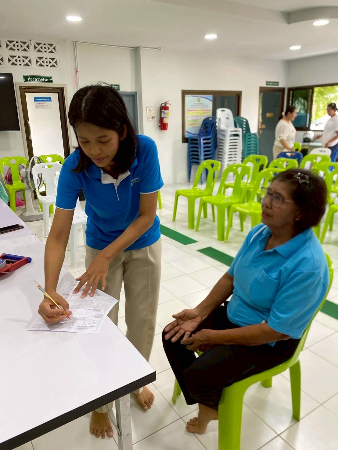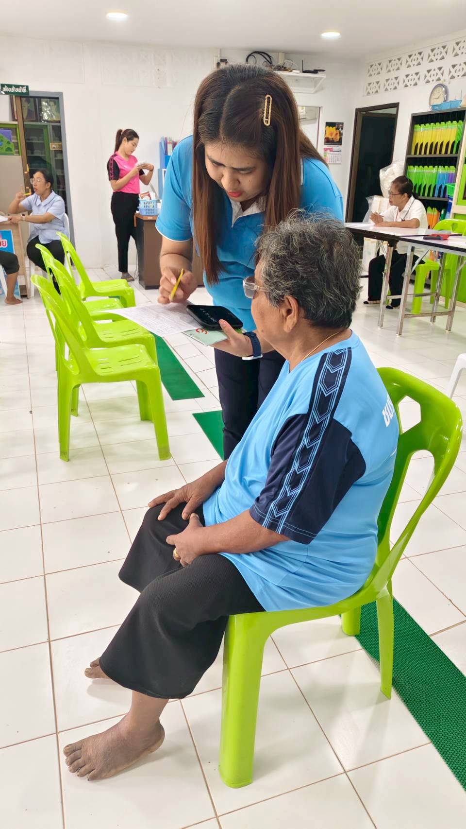 ลุ่มพัฒนาการส่งเสริมสุขภาพวัยสูงอายุลงพื้นที่ตรวจคัดกรองประเมินสมรรถนะ ผู้สูงอายุ ด้านภาวะหกล้ม มวลกล้ามเนื้อน้อย และการกินโปรตีน ในชมรมผู้สูงอายุรพ.สต.บ้านบางใหญ่