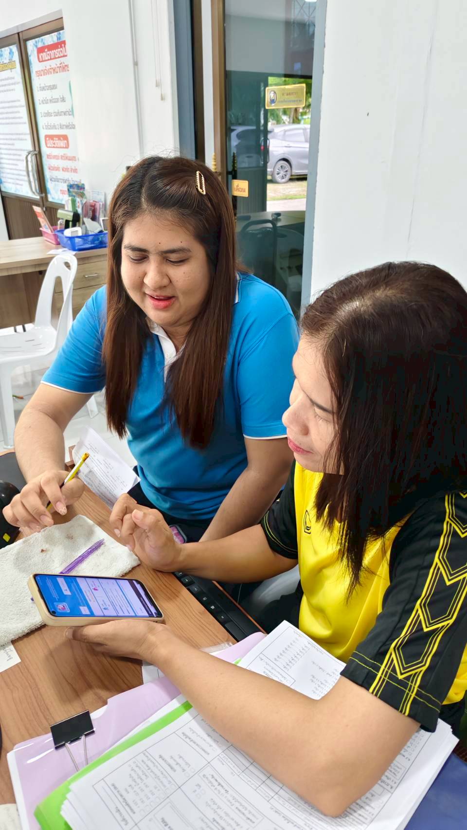 5.สอนการใช้งานแอพพลิเคชั่น blue book เพื่อลงข้อมูลการประเมินสมรรถนะผู้สูงอายุ แก่ เจ้าหน้าที่ อสม. รพ.สต.บ้านบางใหญ่