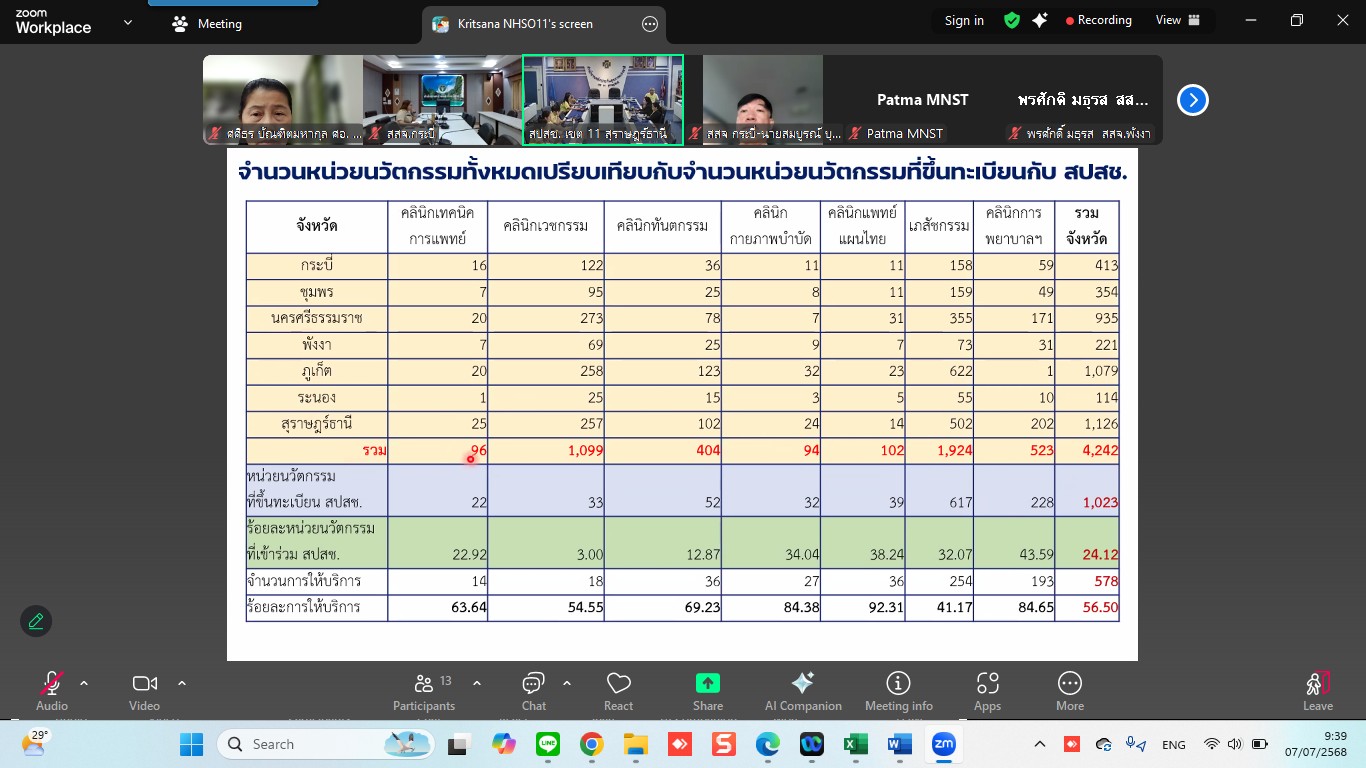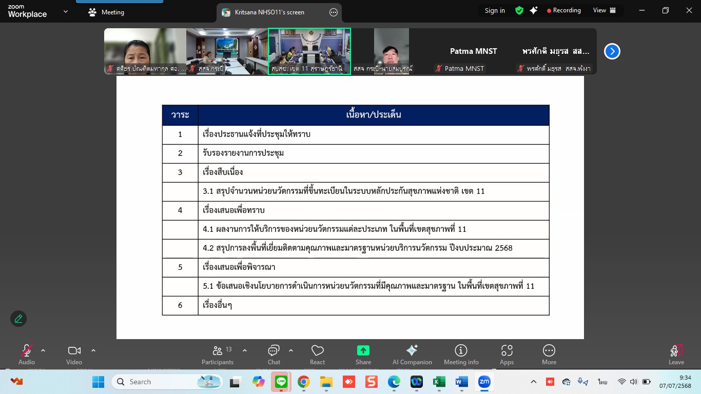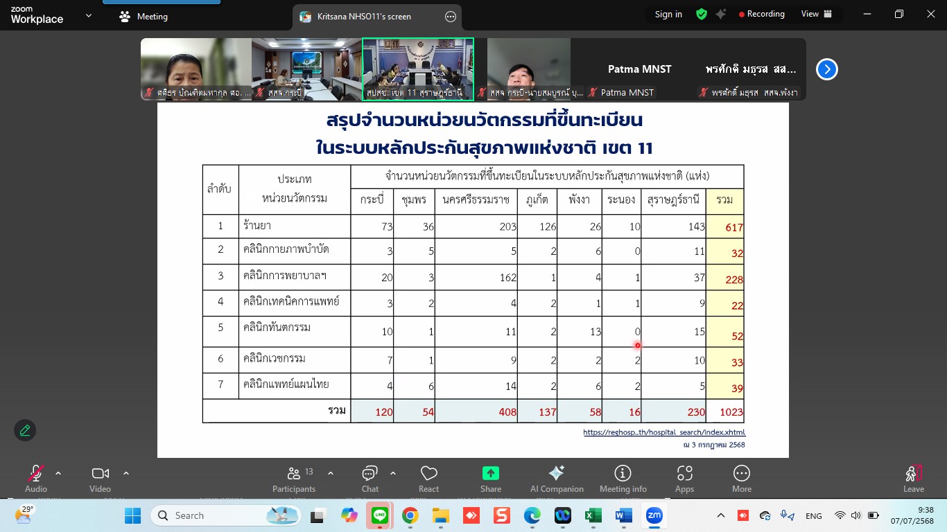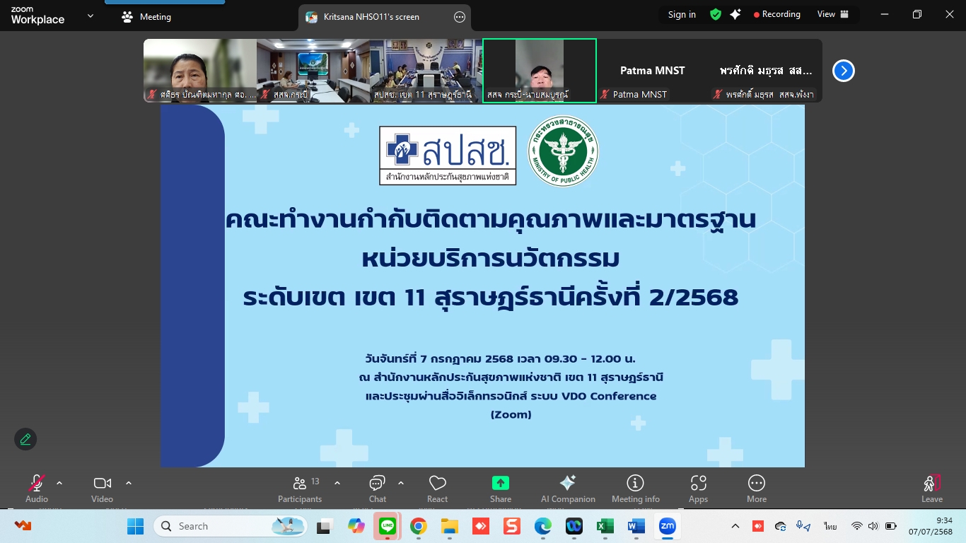 ณะทำงานกำกับติดตามคุณภาพและมาตรฐานหน่วยบริการนวัตกรรม ระดับเขตพื้นที่ เขต 11 สุราษฎร์ธานี เข้าร่วมการประชุมในคณะทำงานกำกับติดตามคุณภาพและมาตรฐานหน่วยบริการนวัตกรรม ระดับเขตพื้นที่ ครั้งที่ 2/2568