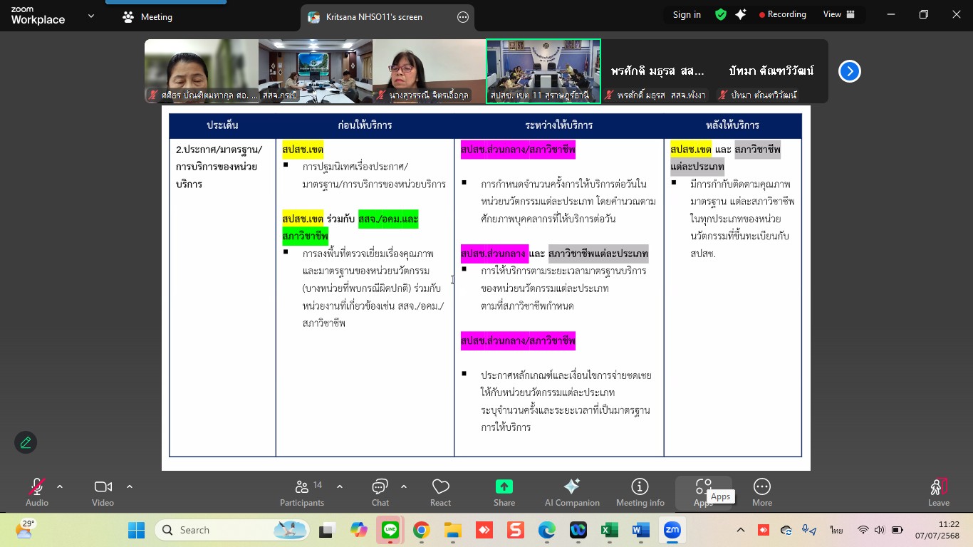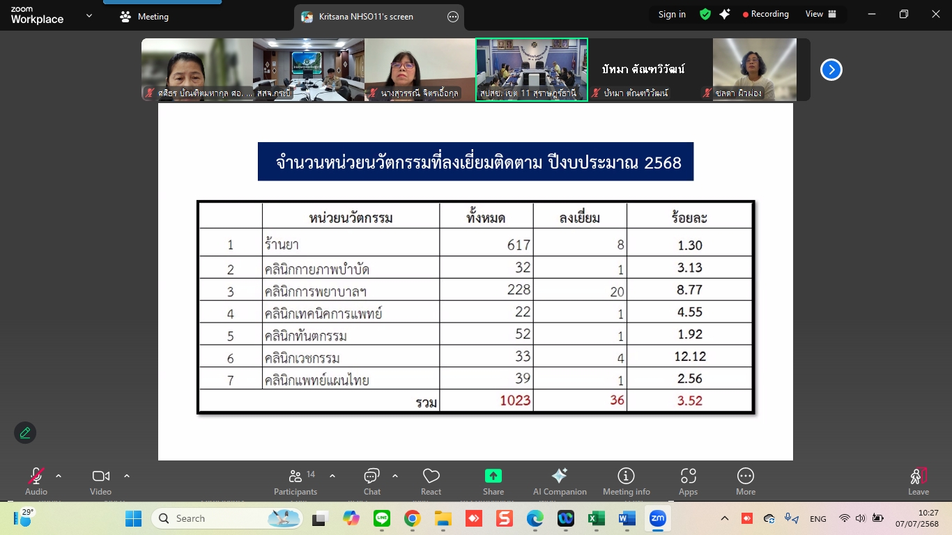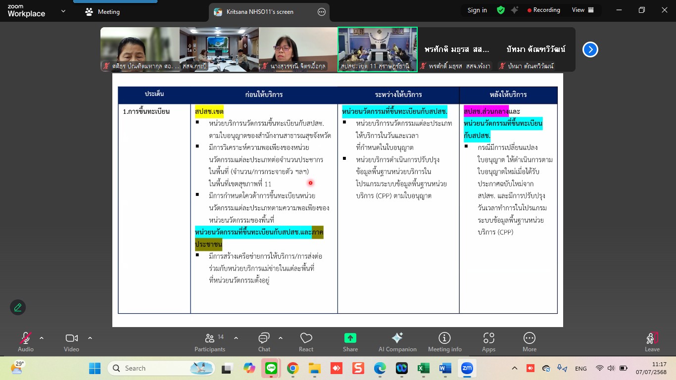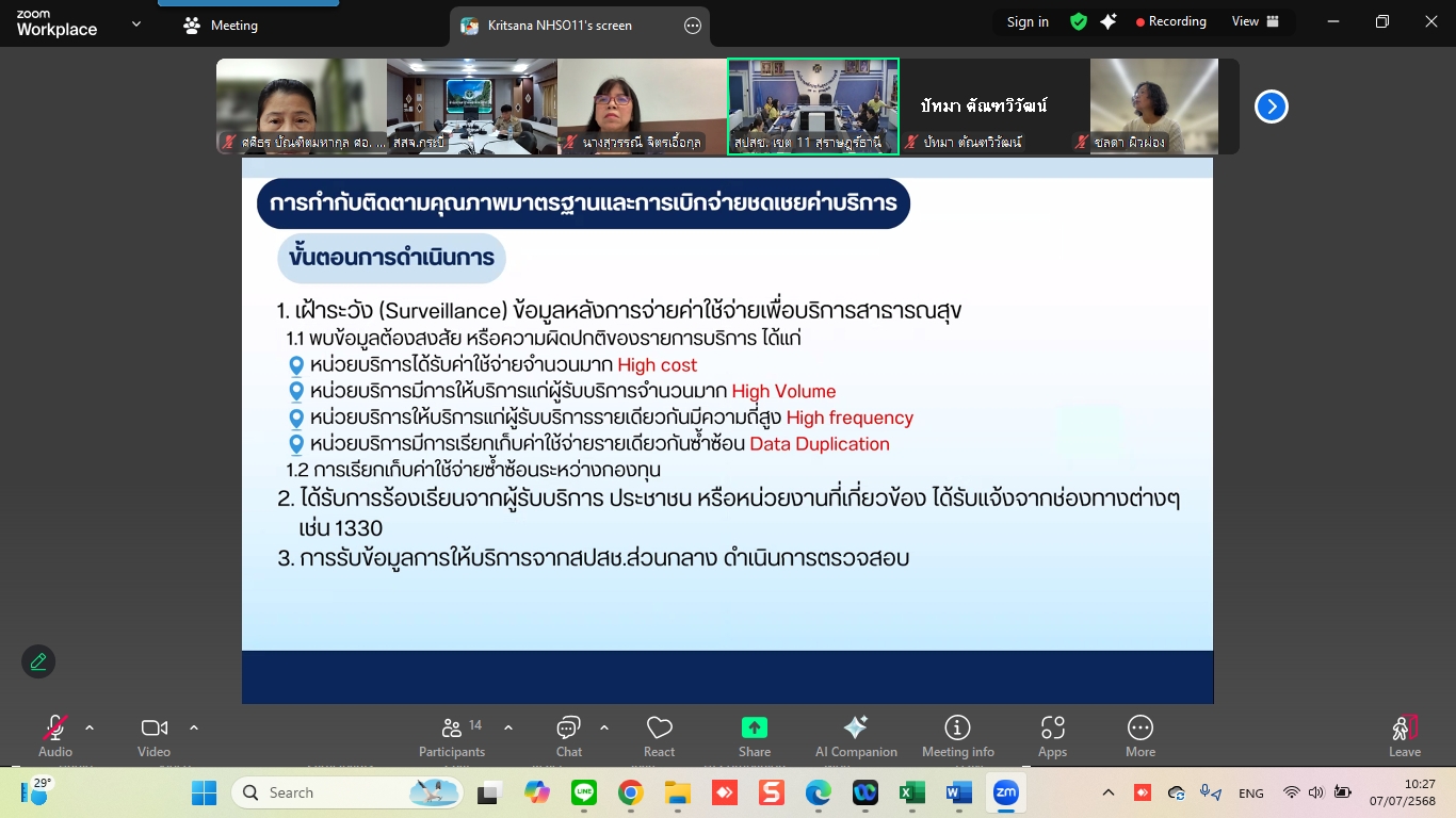 ณะทำงานกำกับติดตามคุณภาพและมาตรฐานหน่วยบริการนวัตกรรม ระดับเขตพื้นที่ เขต 11 สุราษฎร์ธานี เข้าร่วมการประชุมในคณะทำงานกำกับติดตามคุณภาพและมาตรฐานหน่วยบริการนวัตกรรม ระดับเขตพื้นที่ ครั้งที่ 2/2568