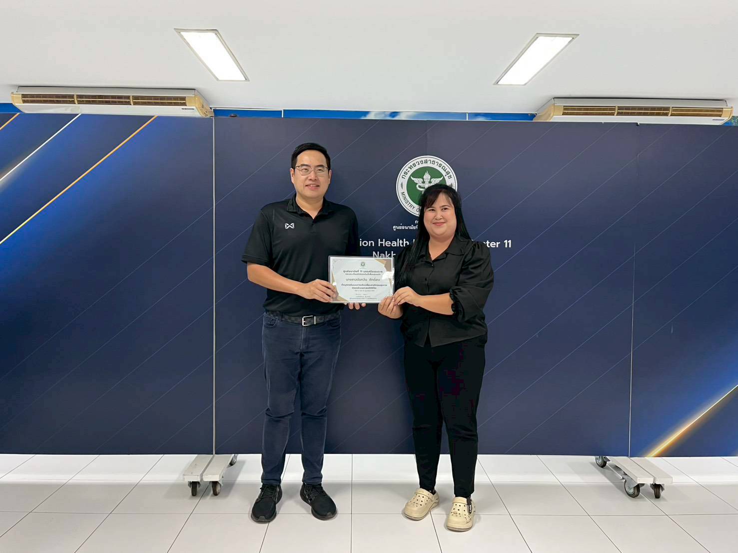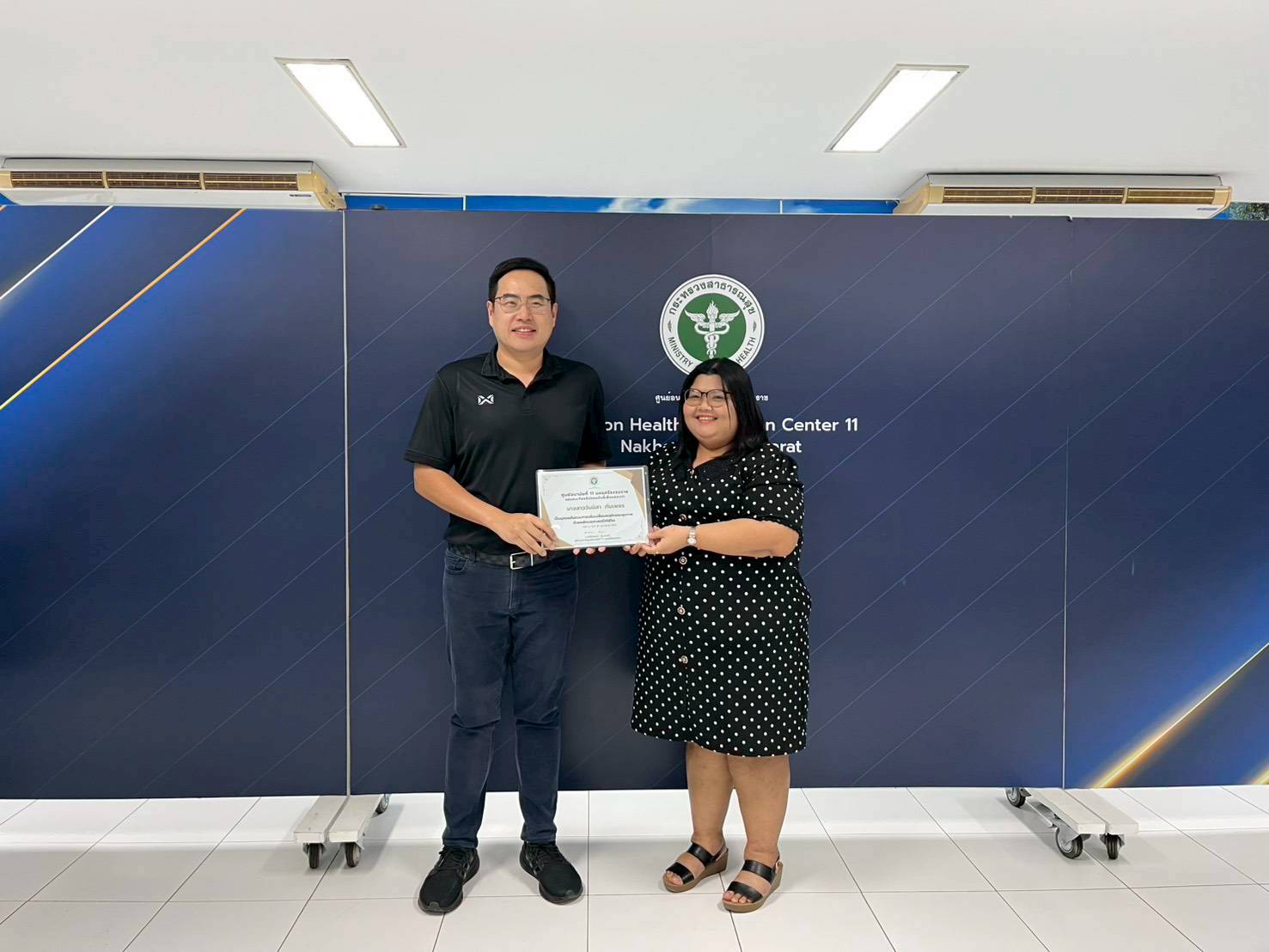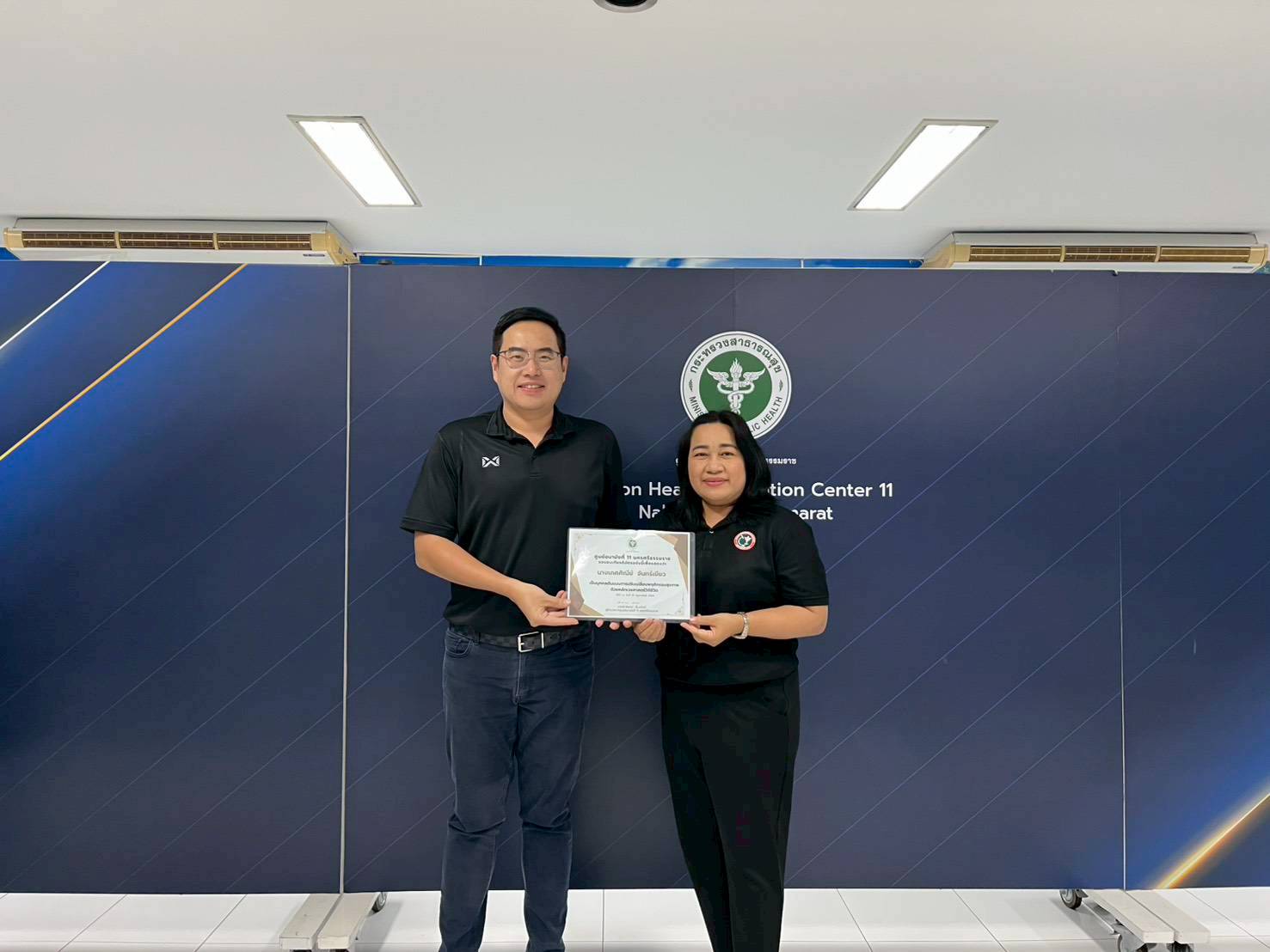วันที่ 25 กุมภาพันธ์ 2569 นายแพทย์ สิทธิพงษ์ ยิ้มสวัสดิ์ ผู้อำนวยการศูนย์อนามัยที่11นครศรีธรรมราช เป็นประธานมอบเกียรติบัตร เชิดชูเกียรติบุคลากรต้นแบบในการปรับเปลี่ยนพฤติกรรมสุขภาพ ด้วยหลักเวชศาสตร์วิถีชีวิต ซึ่งคลินิกเวชศาสตร์วิถีชีวิต กลุ่มพัฒนาการส่งเสริมสุขภาพวัยเรียนวัยรุ่น ได้ดำเนินกิจกรรมแก่บุคลากรที่มีดัชนีมวลกาย อ้วนระดับ 2 เข้าร่วมกิจกรรมทั้งสิ้นจำนวน 15 คน ผลการดำเนินกิจกรรมระยะเวลา 3 เดือน พบว่าบุคลากรที่เข้าร่วมกิจกรรม มีดัชนีมวลกายลดลง จำนวน 6 คน ดังมีรายนามต่อไปนี้