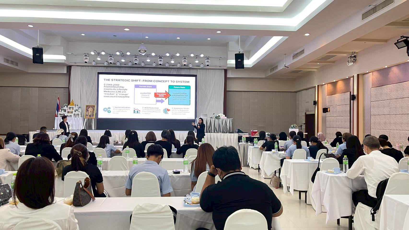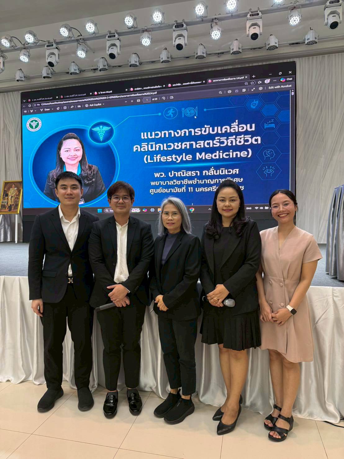 วันที่ 4 มีนาคม 2569นายแพทย์สิทธิพงษ์ ยิ้มสวัสดิ์ ผู้อำนวยการศูนย์อนามัยที่ 11 นครศรีธรรมราช มอบหมายให้ นายแพทย์รักษิต พิศสะอาด แพทย์เฉพาะทางเวชศาสตร์ฟื้นฟู นางปาณิสรา กลั่นนิเวศ พยาบาลวิชาชีพชำนาญการพิเศษ ร่วมเป็นวิทยากรโครงการพัฒนาระบบการดำเนินงาน ป้องกันควบคุมโรคไม่ติดต่อเรื้อรัง (เบาหวาน ความดันโลหิตสูง) (NCD Prevention) จังหวัดสุราษฎร์ธานี ปีงบประมาณ พ.ศ. 2569 ณ ห้องประชุมออร์คิด 1 โรงแรมนิภาการ์เด้น จังหวัดสุราษฎร์ธานี โดยมีวัตถุประสงค์ เพื่อให้ผู้เข้าร่วมอบรมมีความรู้ความเข้าใจ การส่งเสริมและดูแลสุขภาพด้วยหลักเวชศาสตร์วิถีชีวิต และแนวทางการดำเนินงานคลินิกเวชศาสตร์วิถีชีวิตดำเนินการประชุมโดย กลุ่มงานควบคุมโรคไม่ติดต่อ สุขภาพจิตและยาเสพติด สำนักงานสาธารณสุขจังหวัดสุราษฎร์ธานี โดยร่วมบรรยายประเด็นประเด็นหลัก
