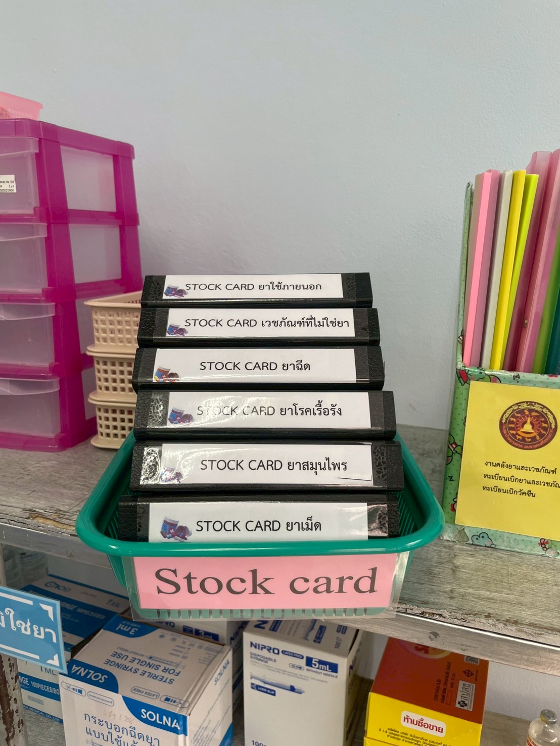 คลังยาและเวชภัณฑ์มีการควบคุมถูกต้อง สถานที่สะอาด จัดเก็บเป็นระเบียบ การจัดวางยาและวัสดุการแพทย์จัดเรียงได้อย่างเหมาะสม แยกประเภทยาและเวชภัณฑ์ละวัสดุอื่นๆชัดเจน ควบคุมการปิด/เปิดคลังยา การดูแลตู้เย็นเก็บวัคซีนเป็นระเบียบ มีขวดน้ำสีเพื่อควบคุมอุณหภูมิ การจัดเรียงวัคซีนแต่ละรายการแยกจัดเก็บชัดเจน แยกวัคซีนใช้แล้วเป็นสัดส่วน มีการจัดทำบัญชีควบคุมเวชภัณฑ์ครบถ้วน มีใบเบิก-ใบรับจ่ายเวชภัณฑ์เรียบร้อย มีการควบคุมอุณหภูมิคลังยาและตู้เย็นเก็บวัคซีนได้ถูกต้องเหมาะสม ไม่พบยาและเวชภัณฑ์หมดอายุ
