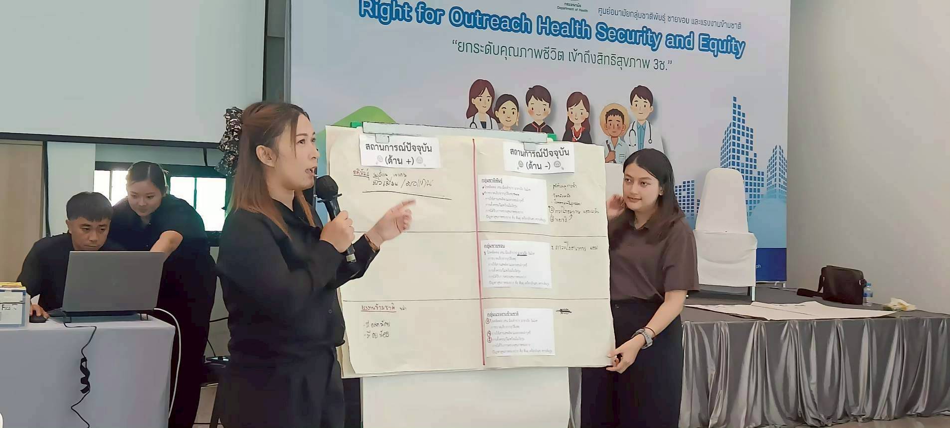 วันที่ 13 มีนาคม 2569 นายแพทย์สิทธิพงษ์ ยิ้มสวัสดิ์ ผู้อำนวยการศูนย์อนามัยที่ 11 นครศรีธรรมราช มอบหมายให้ นางสาววีรวรรณ บุญวงศ์ หัวหน้ากลุ่มพัฒนาอนามัยแม่และเด็ก และนางสาวถาวร พุ่มเอี่ยม พยาบาลวิชาชีพชำนาญการพิเศษ เข้าร่วมประชุมเชิงปฏิบัติการ Right for Outreach Health Security and Equity (ยกระดับคุณภาพชีวิต เข้าถึงสิทธิสุขภาพ 3 ช.) ณ โรงแรมกาลลา อำเภอเมือง จังหวัดระนอง โดยมีผู้บริหาร บุคลากรด้านสาธารณสุข และภาคีเครือข่ายที่เกี่ยวข้องเข้าร่วมกว่า 40 คนก ารประชุมมุ่งพัฒนาระบบบริการสุขภาพเชิงรุก (Outreach) จากการ “ตั้งรับ” สู่ “การเข้าถึงชุมชน” เพื่อค้นหาอุปสรรคในการเข้าถึงบริการสุขภาพของกลุ่มชาติพันธุ์ คนชายขอบ และแรงงานข้ามชาติในพื้นที่จังหวัดระนอง พร้อมร่วมออกแบบแนวทางการส่งเสริมสุขภาพที่เหมาะสมกับบริบทพื้นที่ชายแดน ทั้งนี้ ได้มีการแลกเปลี่ยนเรียนรู้สถานการณ์สุขภาพ การนำเสนอองค์ความรู้ทางวิชาการ และการทำกิจกรรมกลุ่มเพื่อวิเคราะห์ปัญหาและกำหนดแนวทางพัฒนางาน โดยมีหน่วยงานสำคัญเข้าร่วม อาทิ สำนักงานสาธารณสุขจังหวัดระนอง สำนักงานจัดหางานจังหวัดระนอง ตรวจคนเข้าเมืองจังหวัดระนอง และคณะพยาบาลศาสตร์ มหาวิทยาลัยเชียงใหม่
