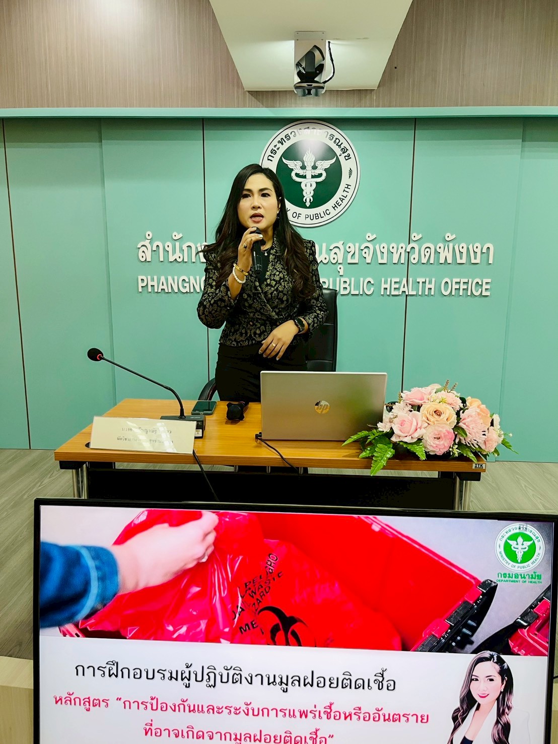 วันที่ 13 มีนาคม พ.ศ.2569 นายแพทย์สิทธิพงษ์ ยิ้มสวัสดิ์ ผู้อำนวยการศูนย์อนามัยที่ 11 นครศรีธรรมราช มอบหมายตัวแทนจากกลุ่มพัฒนาอนามัยสิ่งแวดล้อม เป็นวิทยากรบรรยายหลักสูตรการฝึกอบรมการป้องกันและระงับการแพร่เชื้อหรืออันตรายที่อาจเกิดจากมูลฝอยติดเชื้อ ตามกฎกระทรวงว่าด้วยการกําจัดมูลฝอยติดเชื้อ พ.ศ.2555 ออกตามความในพระราชบัญญัติการสาธารณสุข พ.ศ.2535 รุ่นที่ 2 ณ ห้องประชุม ชั้น 3 สำนักงานสาธารณสุขจังหวัดพังงา อำเภอเมือง จังหวัดพังงา จัดโดยกลุ่มงานอนามัยสิ่งแวดล้อมและอาชีวฯ สำนักงานสาธารณสุขจังหวัดพังงา เพื่อพัฒนาศักยภาพบุคลากรที่เกี่ยวข้องในการจัดการมูลฝอยติดเชื้อตั้งแต่ต้นทาง กลางทาง ปลายทาง ให้มีองค์ความรู้ ความสามารถตามหลักวิชาการและเป็นไปตามกฎหมายกำหนด กลุ่มเป้าหมาย ประกอบด้วยหน่วยงานแหล่งกำเนิดมูลฝอยติดเชื้อ หน่วยงานเก็บขนและกำจัดมูลฝอยติดเชื้อ ทั้งภาครัฐและเอกชน จำนวนทั้งสิ้น 120 คน เนื้อหาการอบรมมีทั้งหมด 7 รายวิชา ประกอบด้วยประเด็น นโยบายและกฎหมายที่เกี่ยวข้อง ความรู้พื้นฐานและหลักการจัดการมูลฝอยติดเชื้อ ผลกระทบต่อสุขภาพและสิ่งแวดล้อม มาตราการป้องกันอันตรายส่วนบุคคล การคัดแยก เก็บรวบรวม และเคลื่อนย้าย หลักการปฏิบัติในการขนส่ง และเทคโนโลยีการกำจัดมูลฝอยติดเชื้อ ทั้งนี้ได้รับความสนใจจากผู้เข้าร่วมอบรมและมีการแลกเปลี่ยนเรียนรู้กระบวนการจัดการมูลฝอยติดเชื้อร่วมกับเทศบาลนครนครภูเก็ต รวมถึงผู้เข้าร่วมประชุมร่วมแสดงความคิดเห็น และสะท้อนปัญหาหน้างานและสามารถหาแนวทางแก้ปัญหาสถานการณ์ปัจจุบัน ให้สามารถพัฒนาระบบการบริหารจัดการมูลฝอยติดเชื้อในพื้นที่จังหวัดพังงาต่อไปอย่างยั่งยืนในอนาคต