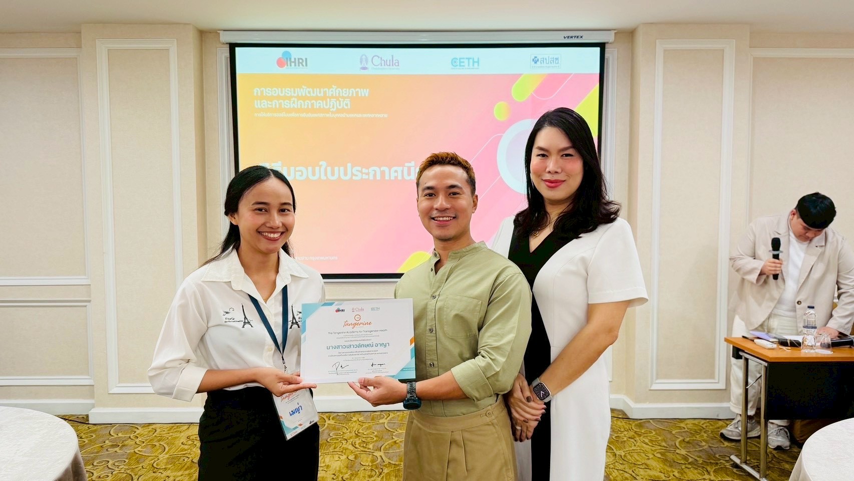 วันที่ 16-19 มีนาคม 2569 นายแพทย์สิทธิพงษ์ ยิ้มสวัสดิ์ ผู้อำนวยการศูนย์อนามัยที่ 11 นครศรีธรรมราช มอบหมายให้นางสาวเสาวลักษณ์ อาญา พยาบาลวิชาชีพปฏิบัติการ กลุ่มพัฒนาการส่งเสริมสุขภาพวัยเรียนวัยรุ่น เข้าร่วมอบรมพัฒนาศักยภาพการให้บริการฮอร์โมนเพื่อการยืนยันเพศสภาพในบุคคลข้ามเพศและเพศหลากหลาย รุ่นที่ 2/2569 โครงการ The Tangerine Academy for Transgender Health ณ โรงแรมแมนดาริน สามย่าน กรุงเทพมหานคร โดยการประชุมดังกล่าว มีวัตถุประสงค์เพื่อสร้างความรู้ ความเข้าใจ และเตรียมความพร้อมด้านการจัดบริการฮอร์โมนยืนยันเพศสภาพสำหรับคนข้ามเพศและผู้มีความหลากหลายทางเพศสภาพ โดยเน้นแนวทางที่ขับเคลื่อนโดยชุมชนและยึดผู้รับบริการเป็นศูนย์กลาง สร้างความเข้าใจเกี่ยวกับสิทธิประโยชน์ ระบบบริการ และกลไกการเบิกจ่ายด้านฮอร์โมนยืนยันเพศสภาพภายใต้ สปสช. ร่วมกับพัฒนาทักษะผ่านการทำกิจกรรมเชิงปฏิบัติการ และแลกเปลี่ยนประสบการณ์จากสหวิชาชีพ ซึ่งมีผู้เข้าร่วมประชุมจำนวน 16 คน ประกอบไปด้วย แพทย์ พยาบาล และนักสังคมสงเคราะห์ สังกัดหน่วยงานภาครัฐ เอกชน และองค์กรอิสระ หลังการประชุมทำให้ผู้เข้าร่วมประชุมสามารถนำความรู้ที่ได้รับไปประยุกต์ใช้ในการดูแลผู้รับบริการที่มีความหลากหลายทางเพศสภาพในหน่วยงานของตนเองได้อย่างเหมาะสมและมีประสิทธิภาพมากยิ่งขึ้น