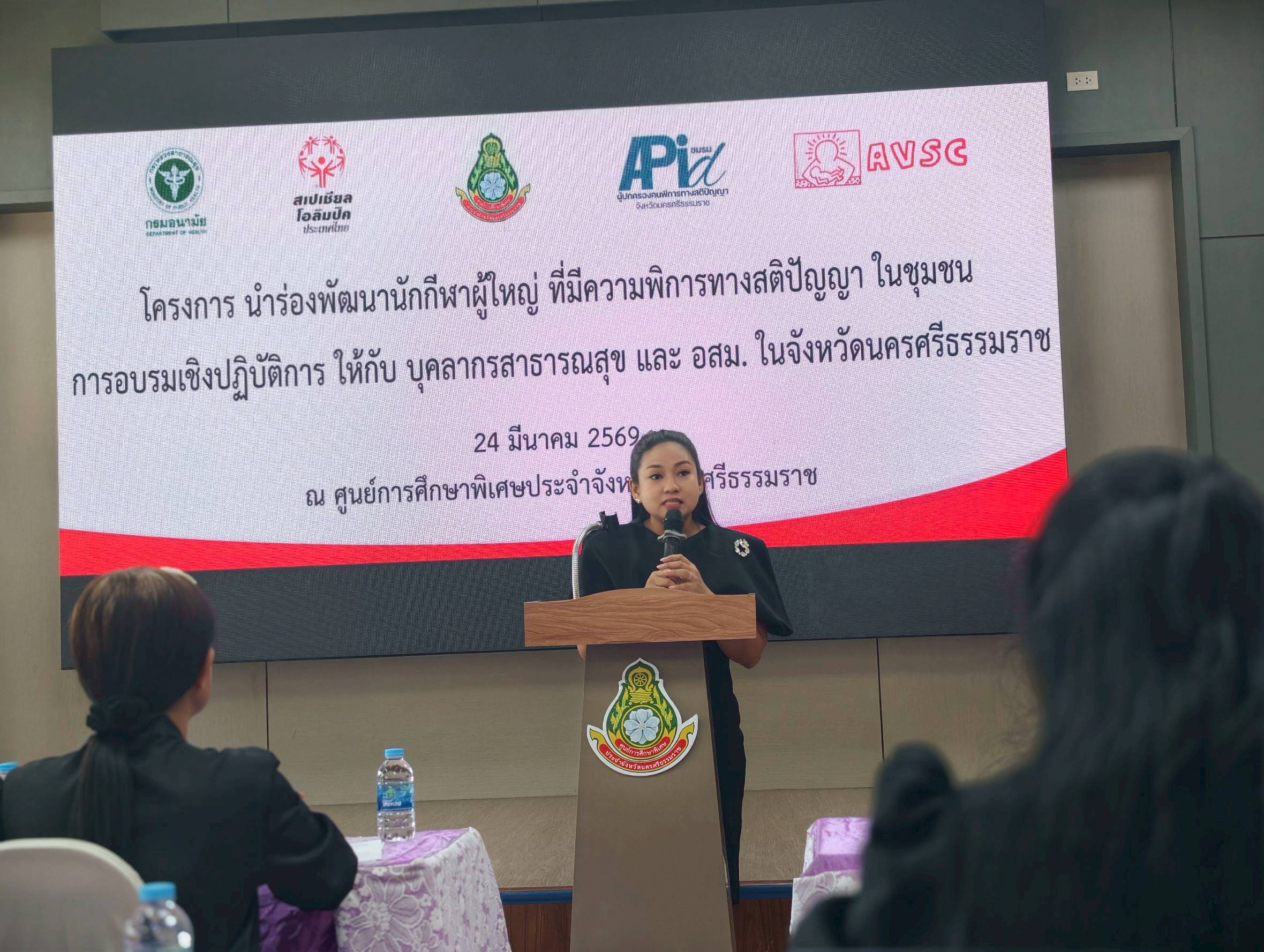 ลุ่มพัฒนาการส่งเสริมสุขภาพวัยทำงาน เข้าร่วมการอบรมเชิงปฏิบัติการ ให้กับบุคลากรสาธารณสุข และ อสม. ใน 4 จังหวัดนำร่อง ภายใต้โครงการนำร่องพัฒนานักกีฬาผู้ใหญ่ ที่มีความพิการทางสติปัญญา ในชุมชน ณ ศูนย์การศึกษาพิเศษ ประจำจังหวัดนครศรีธรรมราช