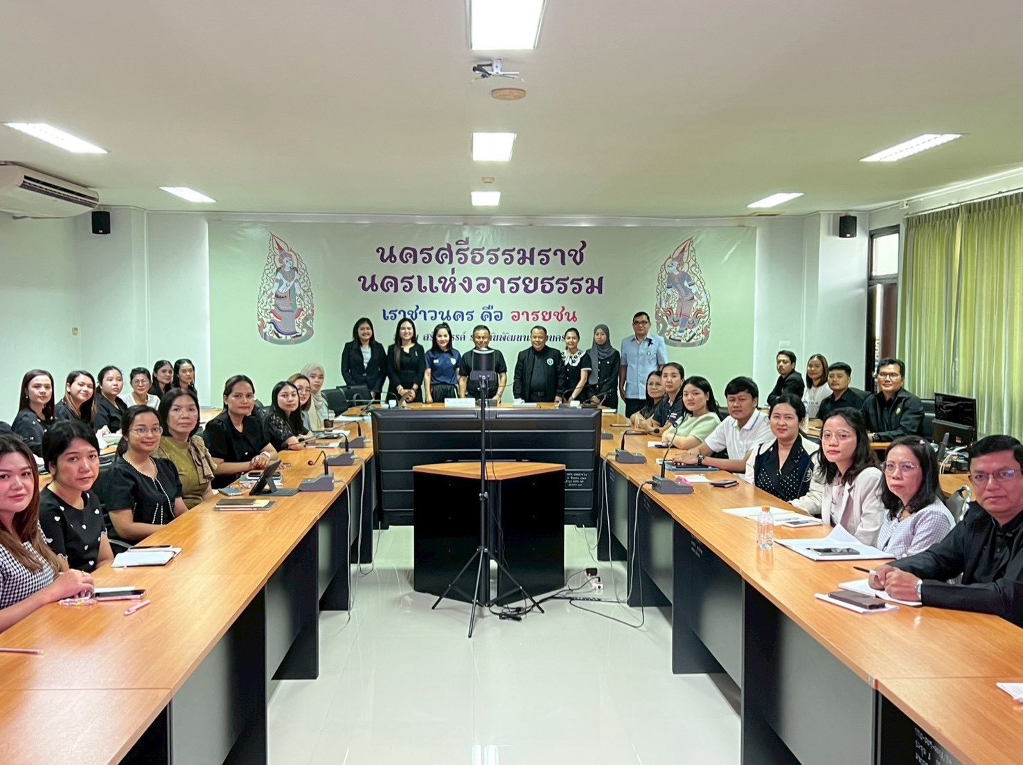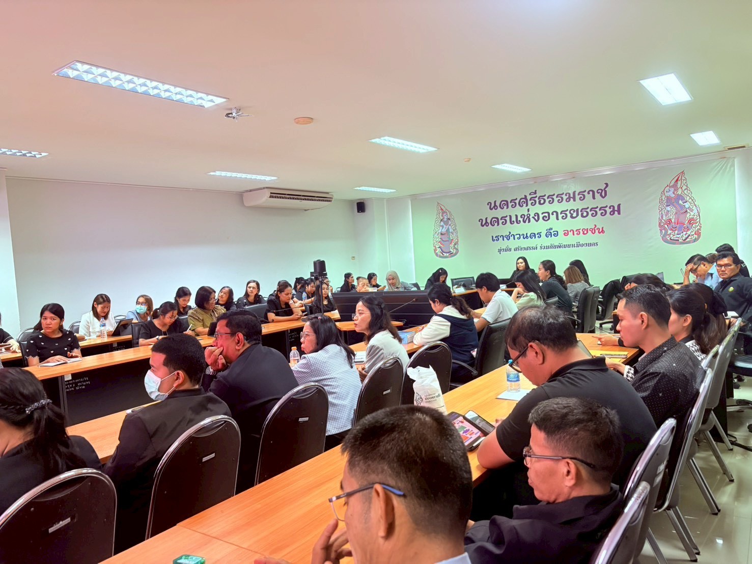วันที่ 25 มีนาคม พ.ศ.2569 นายแพทย์สิทธิพงษ์ ยิ้มสวัสดิ์ ผู้อำนวยการศูนย์อนามัยที่ 11 นครศรีธรรมราช มอบหมายตัวแทนจากกลุ่มพัฒนาอนามัยสิ่งแวดล้อม เป็นวิทยากรบรรยายหลักสูตรการฝึกอบรมการป้องกันและระงับการแพร่เชื้อหรืออันตรายที่อาจเกิดจากมูลฝอยติดเชื้อ ตามกฎกระทรวงว่าด้วยการกําจัดมูลฝอยติดเชื้อ พ.ศ.2555 ออกตามความในพระราชบัญญัติการสาธารณสุข พ.ศ.2535 ณ ห้องประชุม ชั้น 4สำนักงานสาธารณสุขจังหวัดนครศรีธรรมราช อำเภอเมือง จังหวัดนครศรีธรรมราช จัดโดยกลุ่มงานอนามัยสิ่งแวดล้อมและอาชีวฯ สำนักงานสาธารณสุขจังหวัดนครศรีธรรมราช เพื่อพัฒนาศักยภาพบุคลากรที่เกี่ยวข้องในการจัดการมูลฝอยติดเชื้อตั้งแต่ต้นทาง กลางทาง ปลายทาง ให้มีองค์ความรู้ ความสามารถตามหลักวิชาการและเป็นไปตามกฎหมายกำหนด กลุ่มเป้าหมาย ประกอบด้วยหน่วยงานแหล่งกำเนิดมูลฝอยติดเชื้อ พื้นที่จังหวัดนครศรีธรรมราช จำนวนทั้งสิ้น 50 คน เนื้อหาการอบรมมีทั้งหมด 7 รายวิชา ประกอบด้วยประเด็น นโยบายและกฎหมายที่เกี่ยวข้อง ความรู้พื้นฐานและหลักการจัดการมูลฝอยติดเชื้อ ผลกระทบต่อสุขภาพและสิ่งแวดล้อม มาตราการป้องกันอันตรายส่วนบุคคล การคัดแยก เก็บรวบรวม และเคลื่อนย้าย หลักการปฏิบัติในการขนส่ง และเทคโนโลยีการกำจัดมูลฝอยติดเชื้อ ทั้งนี้ได้รับความสนใจจากผู้เข้าร่วมอบรมและมีการแลกเปลี่ยนเรียนรู้กระบวนการจัดการมูลฝอยติดเชื้อร่วมกัน รวมถึงผู้เข้าร่วมประชุมร่วมแสดงความคิดเห็น และสะท้อนปัญหาหน้างานและสามารถหาแนวทางแก้ปัญหาสถานการณ์ปัจจุบัน ให้สามารถพัฒนาระบบการบริหารจัดการมูลฝอยติดเชื้อในพื้นที่จังหวัดนครศรีธรรมราชต่อไปอย่างยั่งยืนในอนาคต