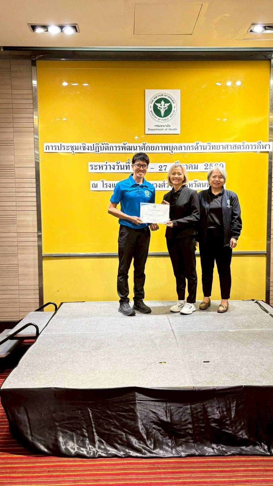เมื่อวันที่ 23 -27 มีนาคม 2569 นายแพทย์สิทธิพงษ์ ยิ้มสวัสดิ์ ผู้อำนวยการศูนย์อนามัยที่ 11 นครศรธรรมราช มอบหมายให้ นายวันชัย เยี่ยงกุลเชาว์ นักวิชาการสาธารณสุขชำนาญการพิเศษ เข้าร่วม ประชุมเชิงปฏิบัติการพัฒนาศักยภาพบุคลากรด้านวิทยาศาสตร์การกีฬาโดย กองกิจกรรมทางกายเพื่อสุขภาพ กรมอนามัย ได้รับเกียรติจาก นายแพทย์ปกรณ์ ตุงคะเสรีรักษ์ รองอธิบดีกรมอนามัย ให้เกียรติเป็นประธานเปิดการประชุม และ นายแพทย์วันฉัตร ชินสุวาเทย์ ผู้อำนวยการกองกิจกรรมทางกายเพื่อสุขภาพ เป็นผู้กล่าวรายงาน และ คณะวิทยากร จากมหาวิทยาลัยเกษตรศาสตร์ ผู้เข้าร่วม ประชุม ประกอบด้วย บุคลากรจากกระทรวงสาธารณสุข สถาบันการศึกษา และสถานประกอบกิจการด้านการออกกำลังกายเพื่อสุขภาพภาคเอกชน รวมจำนวน 50 คน ณ โรงแรม ไมด้า งามวงศ์วาน นนทบุรี