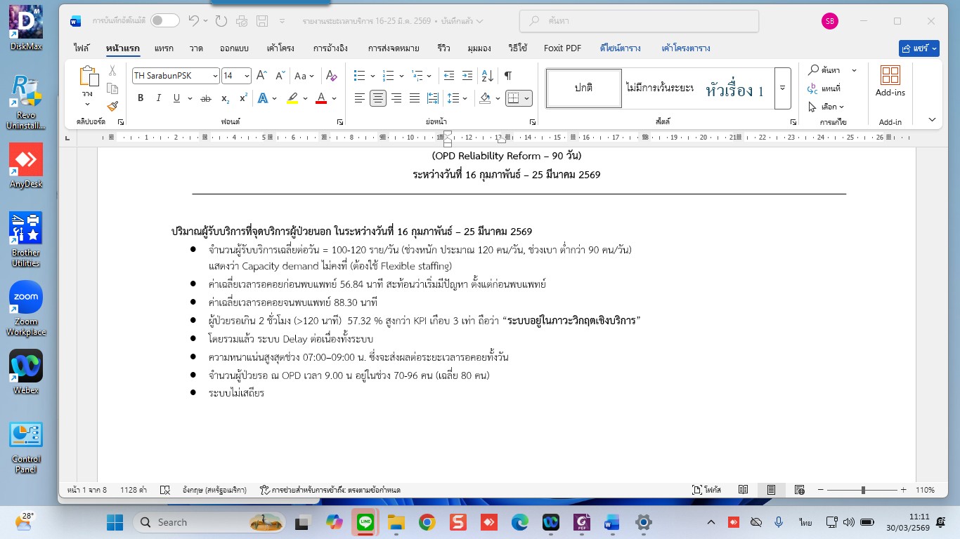 ทพญ.ศศิธร บัณฑิตมหากุล รองผู้อำนวยการศูนย์อนามัยที่ 11 ร่วมประชุมหารือกับผู้แทนองค์กรแพทย์ งานผู้ป่วยนอก งานห้องปฏิบัติการ งานห้องบัตร งานจัดเก็บ และผู้แทน รพ.สต. ในเครือข่ายโรงพยาบาลศูนย์อนามัยที่ 11 เพื่อหารือการปรับกระบวนการส่งตรวจเลือด เพื่อลดระยะเวลาคอย และความแออัดในโรงพยาบาล รวมทั้งอำนวยความสะดวกให้ผู้ป่วยมากขึ้น