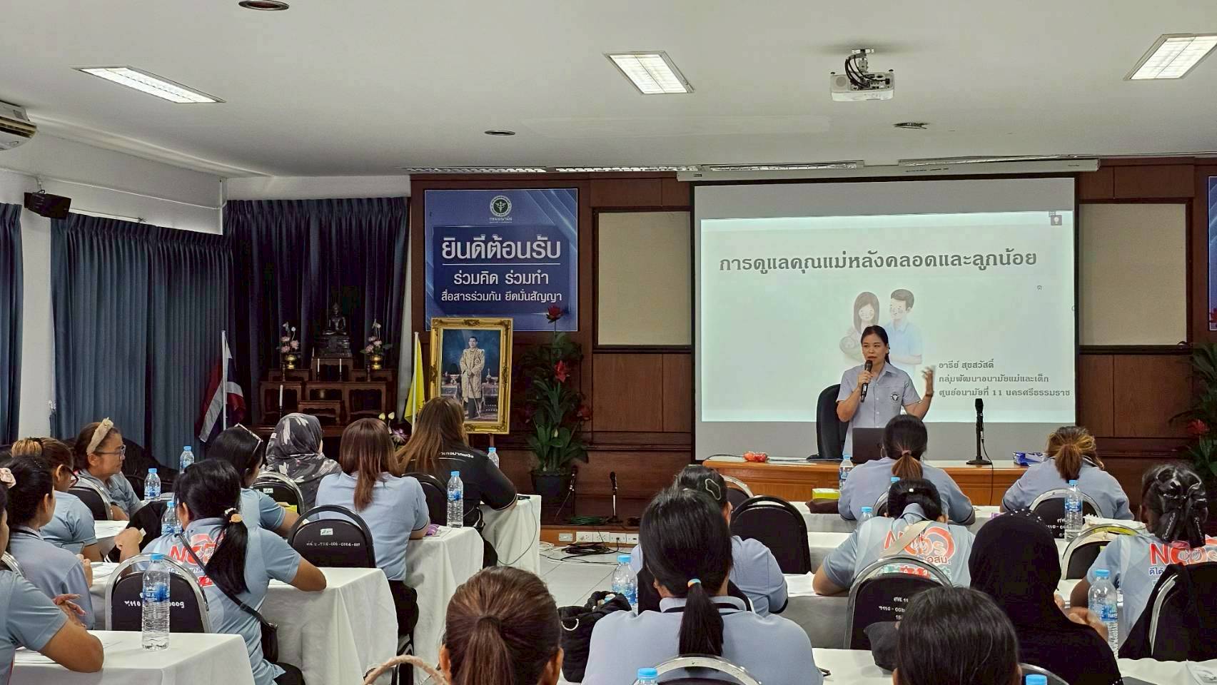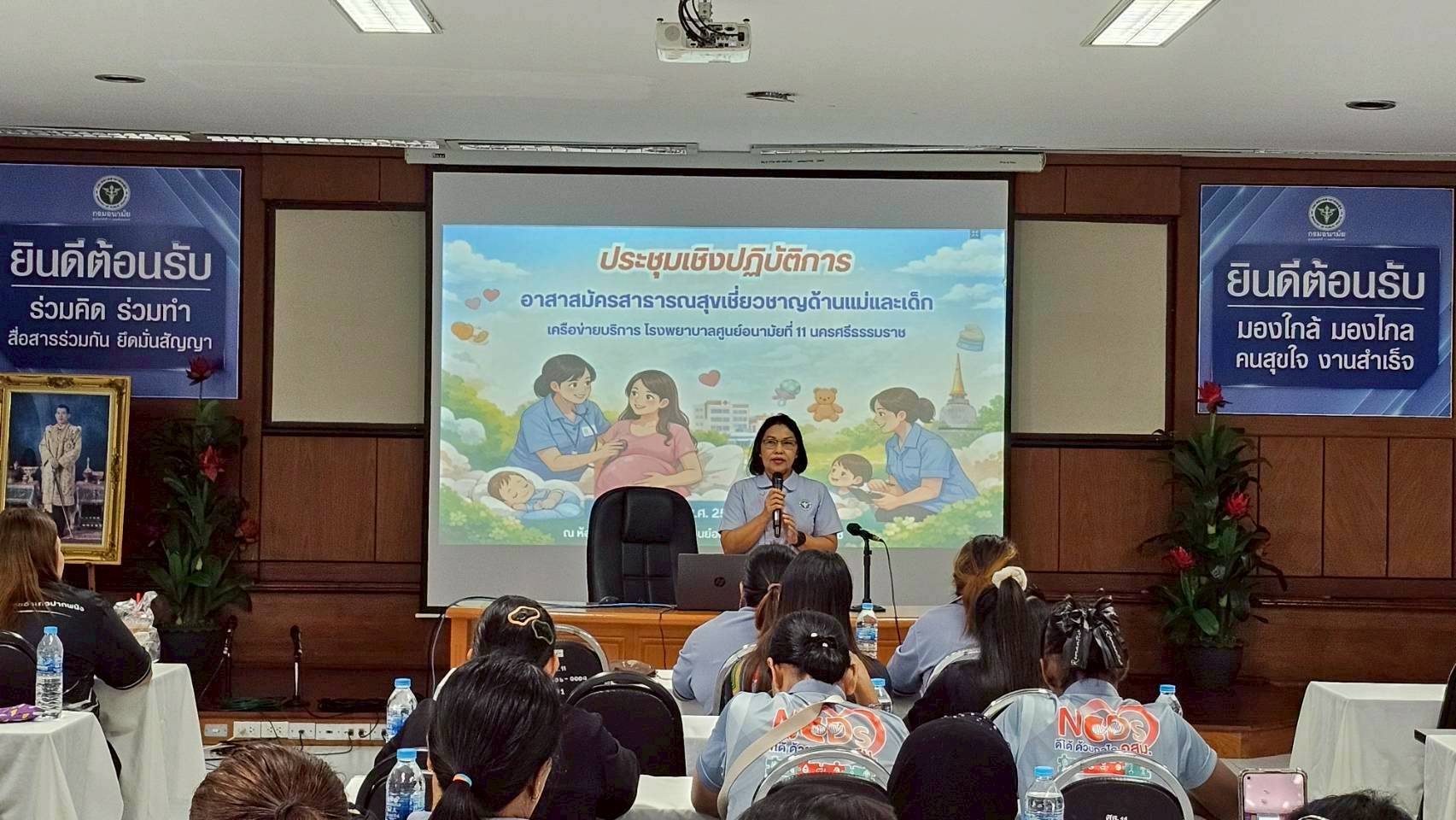 วันที่ 31 มีนาคม 2569 นายแพทย์สิทธิพงษ์ ยิ้มสวัสดิ์ ผู้อำนวยการศูนย์อนามัยที่ 11 นครศรีธรรมราช มอบหมายให้กลุ่มพัฒนาอนามัยแม่และเด็ก จัดประชุมเชิงปฏิบัติการอาสาสมัครสาธารณสุขเชี่ยวชาญด้านแม่และเด็ก เครือข่ายบริการโรงพยาบาลศูนย์อนามัยที่ 11 นครศรีธรรมราช ณ ห้องประชุมสิริธรรมนคร ศูนย์อนามัยที่ 11 นครศรีธรรมราช ซึ่งจัดโดยมีวัตถุประสงค์เพื่อพัฒนาศักยภาพอาสาสมัครสาธารณสุขประจำหมู่บ้านในการดูแลหญิงตั้งครรภ์ หญิงหลังคลอด กิจกรรมในการประชุมเชิงปฎิบัติการฯ มีการบรรยายและฝึกปฏิบัติ โดยเน้นย้ำนโยบาย 4P (Plan of Pregnancy, Plan of ANC, Plan of Delivery, Plan Postpartum Follow-up) ซึ่งเป็นแนวทางของกระทรวงสาธารณสุขเพื่อดูแลหญิงตั้งครรภ์และลดอัตราตายมารดา (MMR) โดยเน้นการวางแผนตั้งแต่ก่อนตั้งครรภ์ ฝากครรภ์คุณภาพ คลอดปลอดภัย และติดตามหลังคลอด เพื่อแม่และลูกแข็งแรง ในการประชุมครั้งนี้ผู้เข้าร่วมประชุมประกอบด้วย อาสาสมัครสาธารณสุขประจำหมู่บ้าน และเจ้าหน้าที่ผู้รับผิดชอบงานอนามัยแม่และเด็กจากเครือข่ายบริการโรงพยาบาลศูนย์อนามัยที่ 11 และวิทยากร รวมทั้งสิ้น 58 คน ซี่งภายหลังประชุมเชิงปฏิบัติการในครั้งนี้ จะมีการฝึกภาคปฏิบัติในชุมชน ระยะเวลา 2 เดือน (เมษายน-พฤษภาคม 2569) เพื่อให้อาสาสมัครสาธารณสุขประจำหมู่บ้าน มีความเชี่ยวชาญในการส่งเสริมสุขภาพ เฝ้าระวังภาวะแทรกซ้อน ของกลุ่มหญิงวัยเจริญพันธุ์ หญิงตั้งครรภ์ หญิงหลังคลอดและทารกในชุมชนได้
