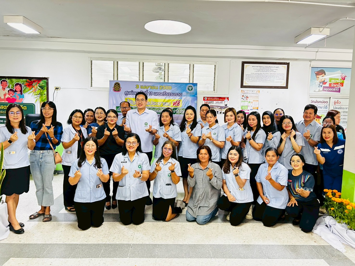 กิจกรรมในวันนี้โรงพยาบาลศูนย์อนามัยที่ 11 ได้จัดบริการสุขภาพเชิงรุกให้แก่ประชาชน ฟรี จำนวน 5 รายการได้แก่